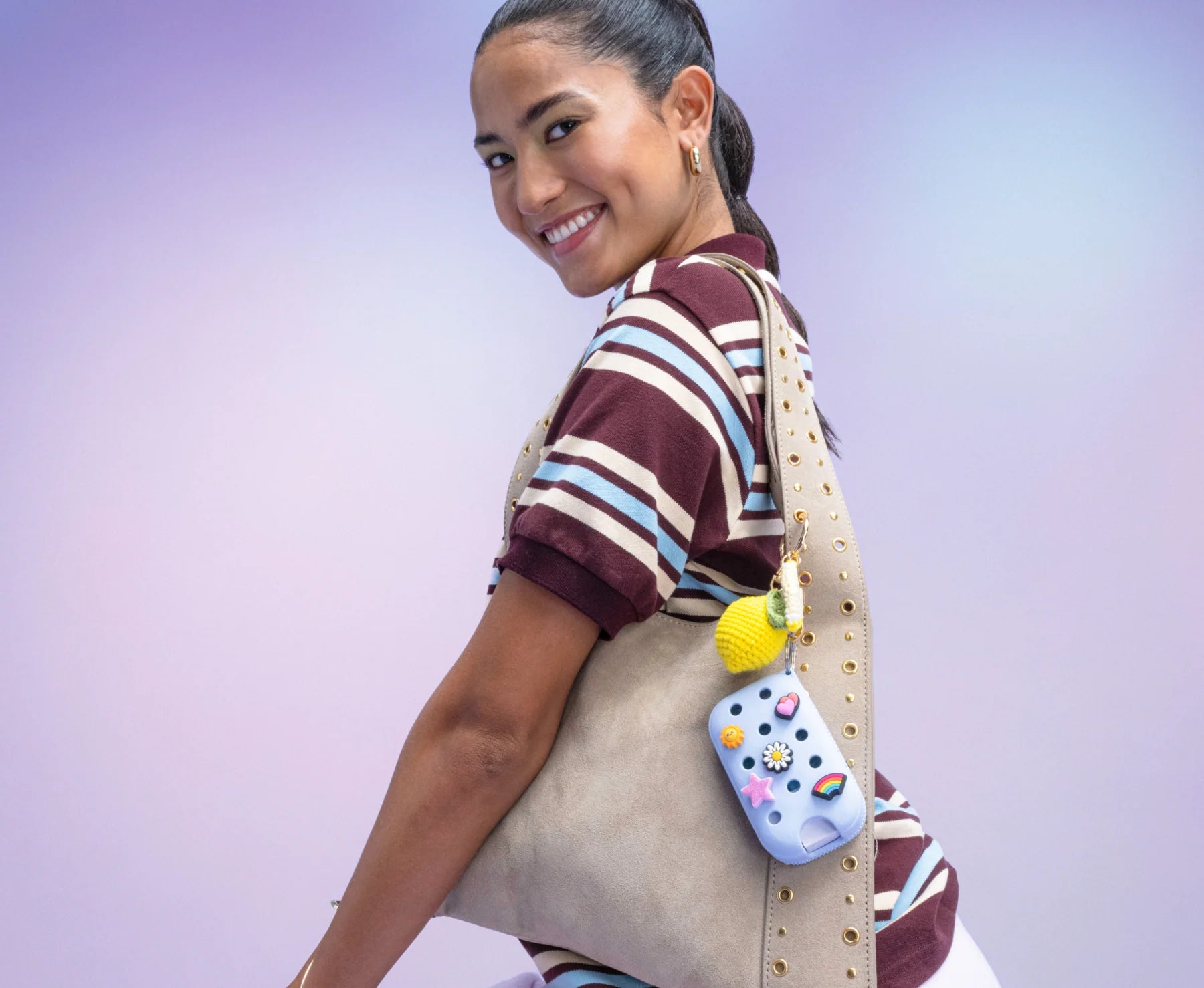 Each case comes with 5 Jibbitz™ charms and a keyring, so you can clip your hand mist to your bag, keys, or belt. Easy to carry. Hard to miss.