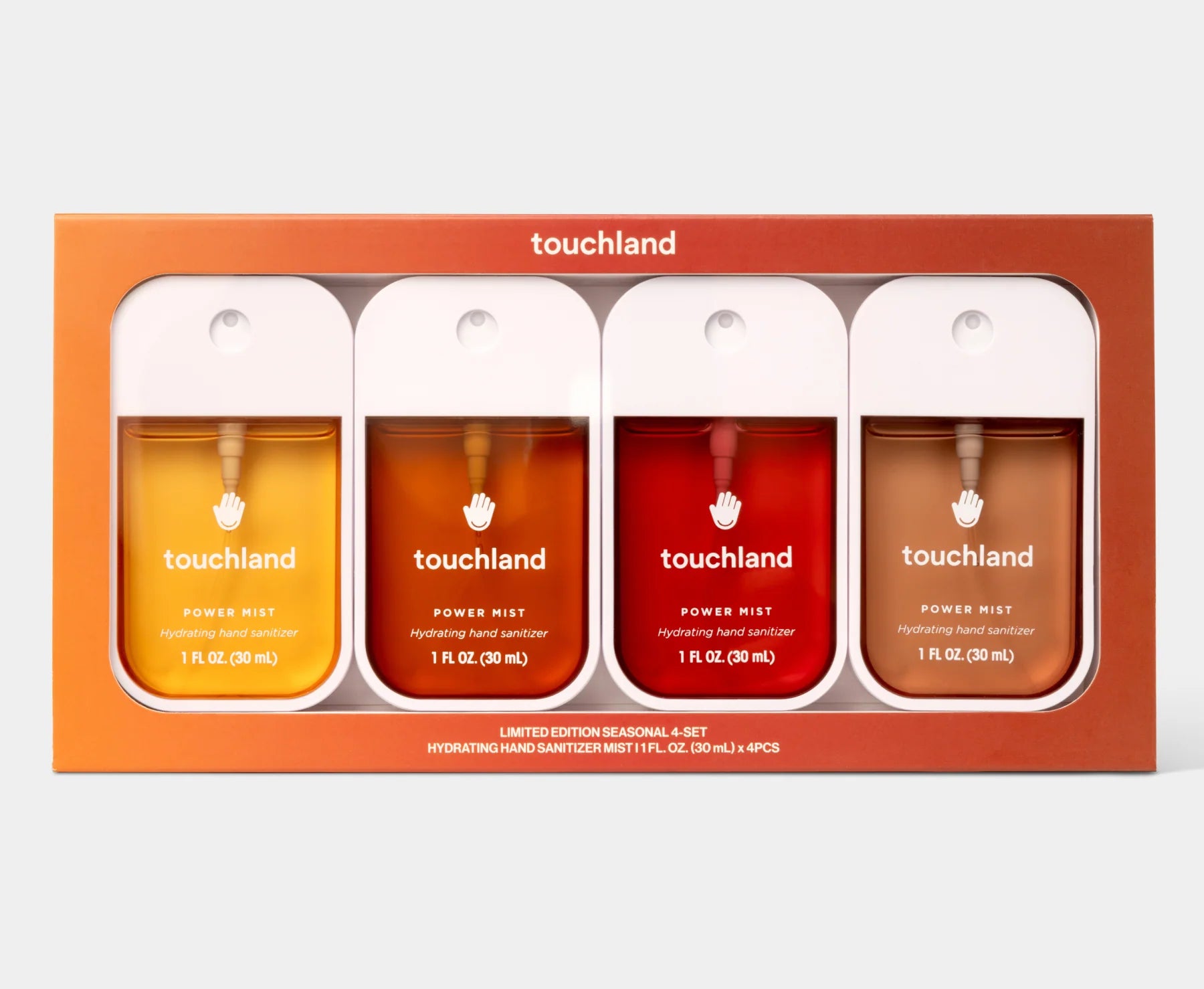 A limited edition collection of skincare-forward hydrating hand sanitizers featuring four indulgent scents: Spiced Pumpkin Tini, Cinnamon Gingerbread, Peppermint Mocha, and Salted Caramel. A festive treat for your senses and a ready-to-gift must-have.